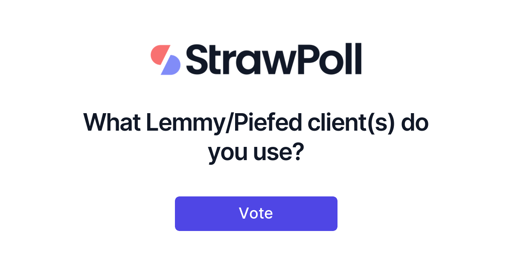 arrow-up1100arrow-down1external-link[Poll] What Lemmy/Piefed client(s) do you use?plus-squarestrawpoll.comXylight@lemdro.idEnglish · 7 days agomessage-square40linkfedilink