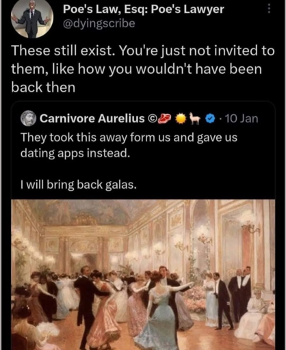 “I will bring back galas.” No you won’t. You’re not running for Congress. You’re a self-obsessed incel bigot on X. Go back to jacking off to underaged girls or whatever 2024+ X users do.