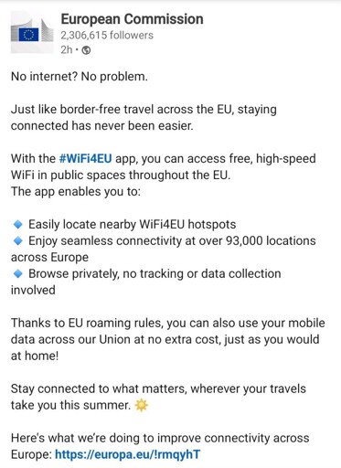 You’re right, I was just going on the post saying “With the WiFi4EU app, you can access…”, implying that you need the app to access it. But on their webpage it spells it out more clearly: