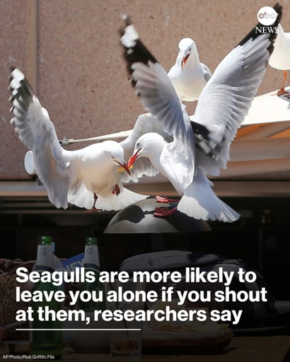Food and silence = 100% of seaguls harass you Food and screaming = some seagulls will leave you alone but never all