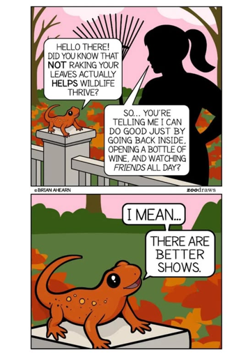 Hedgehogs love leaves. And fuck yes do I want some rodents in my yard. I love bunnies. Why would I not want cool ass beetles? And I’m sure the little lizard wouldn’t mind as well.