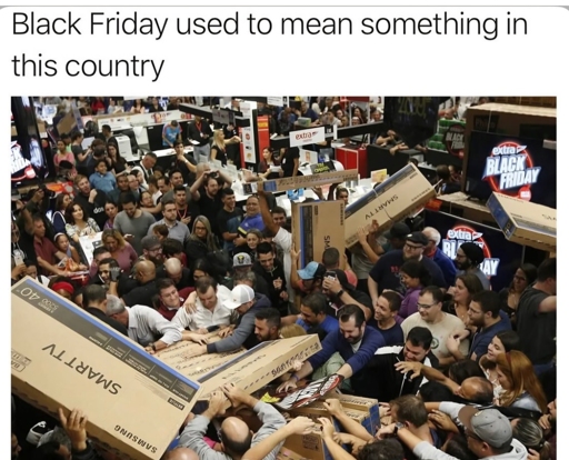 I worked retail in those days, it was crazy. It was common for a few fights to break out. One time I remember pulling out a new skid of Christmas trees and I didn’t even get to the main isle before customers mobbed the skid. My manager was so pissed off at me for not stopping them but how can one person stop dozens of people without any help. Black Friday was gross and BFCM is no better.